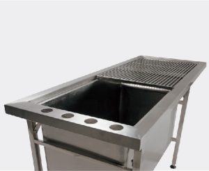 4つの頑丈なステンレス製の脚がこの多機能なテーブルを支えている。脚部は、水平な基部と安全な作業プラットフォームを提供するように調整することができます。